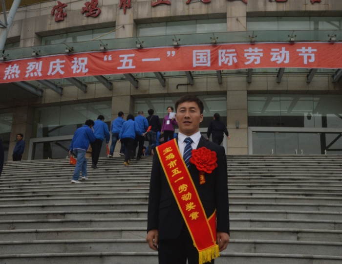 4月30日,寶雞市勞動者之歌暨慶祝“五一”國際勞動節(jié)大會勝利召開,公司劉延強(qiáng)同志被授予“寶雞市五一勞動獎?wù)隆惫鈽s稱號,公司在總部辦公樓前舉行了簡樸隆重的歡迎儀式。公司副董事長、總經(jīng)理胥立,黨委書記景旭東,工會主席王建成等出席儀式,總部全體、寶雞文化藝術(shù)中心項(xiàng)目部管理人員參加。