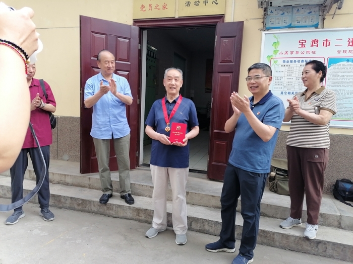 黨委副書記沈為民為退休黨員王體澤同志頒發(fā)“光榮在黨50年”紀(jì)念章。